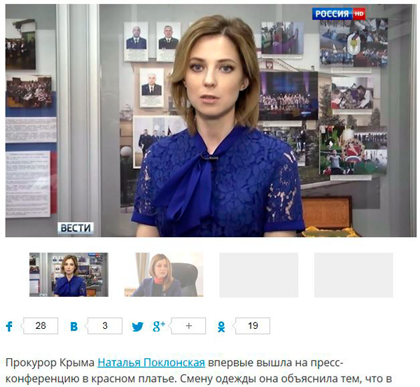 Вот эта фотка сейчас снова порвет Интернет, считает Антон. В каком Поклонская платье - в синем или красном?