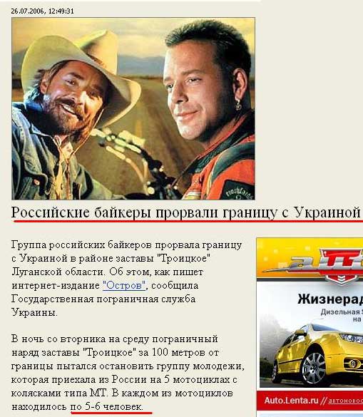 Вы все, наверное, слышали, что российские байкеры прорвали границу с Украиной, сообщает Зубенко Алексей. Но знаете ли вы, кто именно предводительствовал в этом волнующем рейде? Не знаете? А на "Ленте.ру" - знают! Вот их фотографии.
