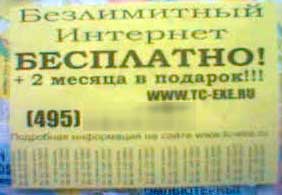 Егор Апполонов обнаружил потрясающее предложение. Полностью бесплатный безлимитный Интернет плюс еще два месяца в подарок. Правда, что в таком случае в подарок - не вполне понятно, но так как с бесплатным Интернетом наверняка наколят, отсутствие подарка мы не заметим.