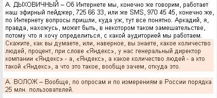 Обратите внимание, веселится AkBot, как Аркадий Волож ухитрился запутанно ответить на предельно простой вопрос Дыховичного.