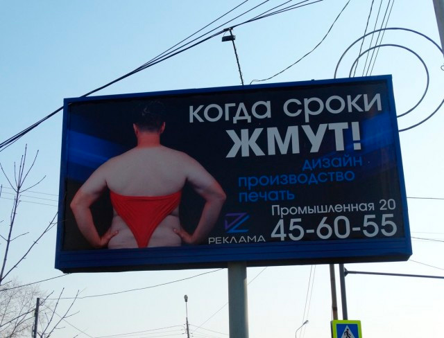 В этой рекламе самое прикольное заключается в том, что она вообще существует. И это - реклама конторы по дизайну и печати. Не хотелось бы узнать, что вообще творится в мозгах у человека, сотворившего такое, и тем более у человека, давшего добро на публикацию данного кошмара.