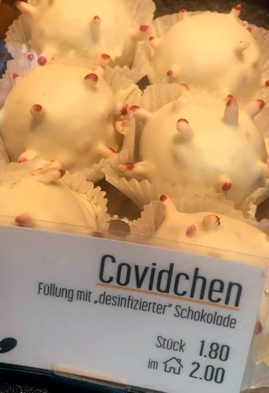 И вот из Германии, подтверждает Михаил, пироженки "Ковидик" с начинкой из продезинфицированного шоколада.