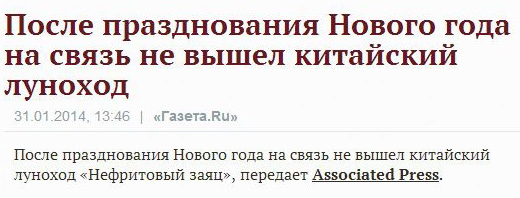 Китайский луноход, замечает Алекс347, отмечает обычный Новый год, старый Новый год и Новый год по китайскому календарю. Он ведь на спирту работает, запас топлива имеется!