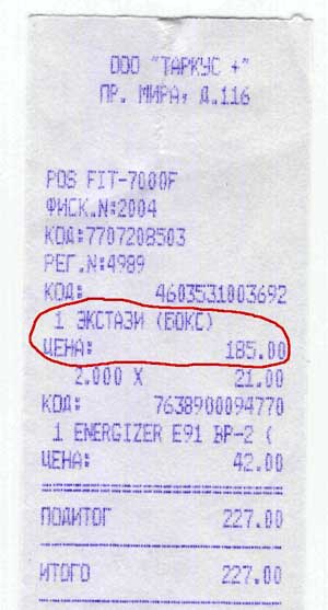 Денис в Москве в обычном магазине купил себе ящик "Экстази". Не верите? Вот чек:
