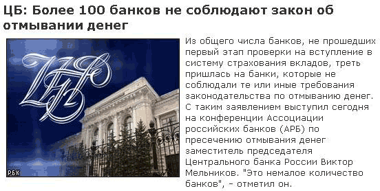 С банками в России беда, печалится Nikolay Kosaretsky. Несмотря на жесткий закон об отмывании денег, многие банки деньги так и не отмывают. Но им еще покажут геращенковскую мать...