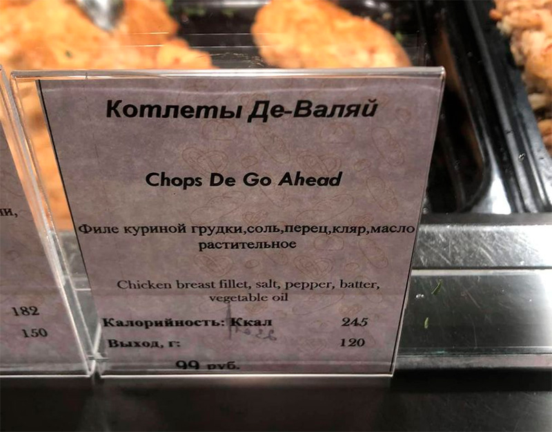 Валяй, предлагает Геннадий, заказывай котлеты. Ну и логично, что перевод на английский звучит как "Котлеты де Вали".