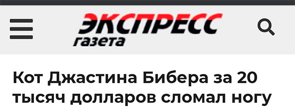 А почему не указано, удивляется Михаил, кому сломал ногу кот Джастина Бибера за 20 тысяч долларов и что теперь кот будет делать с этими деньгами?