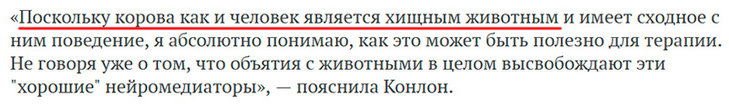 На "Ленте", удивляется Dragster, рассказывают об обнимашках с хищными коровами, которые, как и люди, угрожают всему живому.