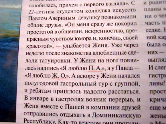 Ж. О. - это, видимо, имя-отчество? Интересно, какая у Жени фамилия? Если на "П", то получается совсем хорошо - можно было имя-отчество-фамилию указать в татуировке.
