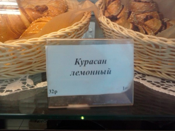 Аксинья очень рекомендует курасан лемонный. Он почти такой же, как круассан, только закручен в обратную сторону с помощью лемона.