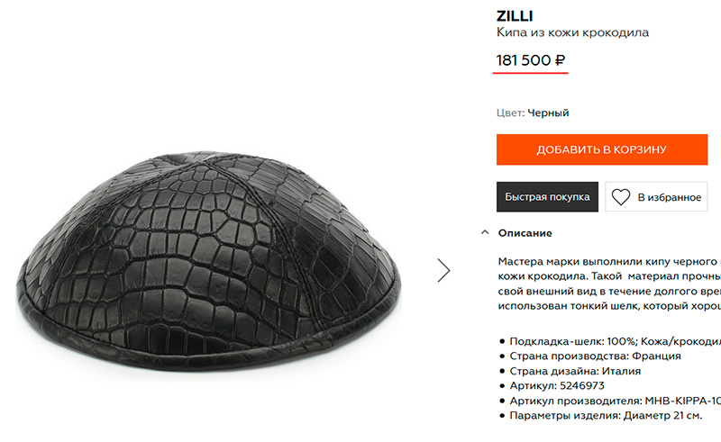 Что вы все ходите с обычной матерчатой кипой, спрашивает Антон у иудеев? Нужно идти в ногу со временем - кипа из кожи крокодила, все полковникам стелила, ноги на ночь мыла. И стоит так нормальненько, не стыдно будет в такой в синагогу зайти.