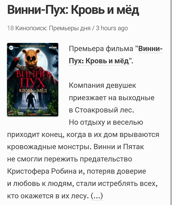 Интересный, должно быть, фильм, думает Виталий. Трагедия Винни и Пятака, которые не смогли пережить предательство Кристофера Робина.