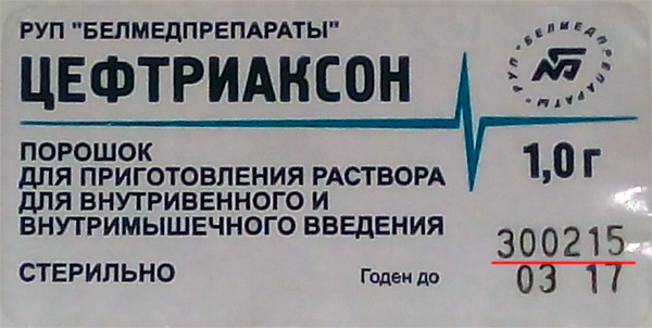 Что касается белорусского Цефтриаксона, то тут как раз все правильно: в первом ряду - номер серии (порядковый номер серии в году, месяц и год выпуска, т.е. 30-я по счету серия, сделанная в феврале 2015), во втором ряду - месяц и год окончания срока годности.