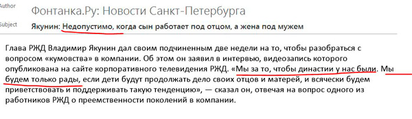 Якунин, видимо, имел в виду именно династии: сын не может работать подчиненным у отца ни при каких обстоятельствах, да и вообще устраиваться куда-нибудь по его протекторату, но когда отец уходит на пенсию - вот тут-то сынулька и появляется на сцене. Тогда все сходится.