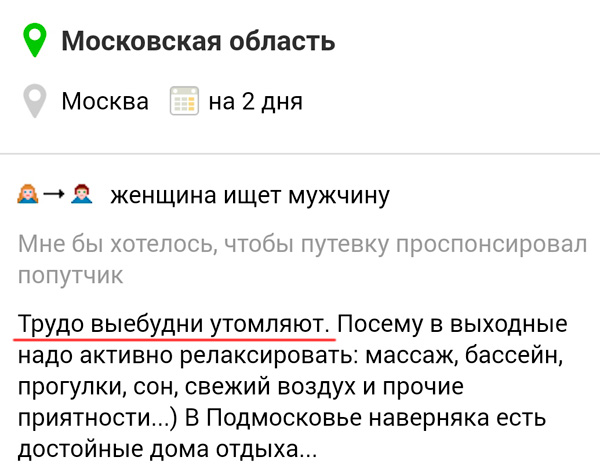 Трудо выебудни ее утомляют, рассказал Next, а вот в выходные она вполне готова.