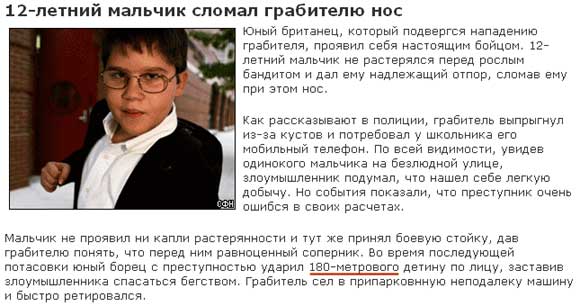 Потрясающую историю рассказал Dicky. Оказывается, 12-летний мальчик сумел дотянуться не только до тестикул 180-метрового верзилы.