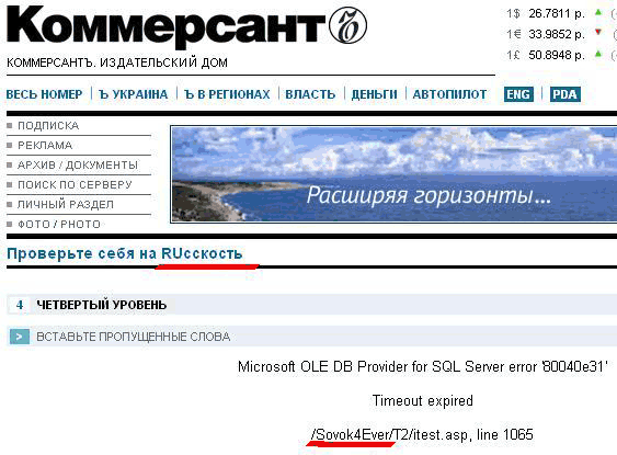 На сайте "Коммерсанта" слегка глюканул сервер, рассказал Илья, зато стало понятно, что о нас думает местный сисадмин.