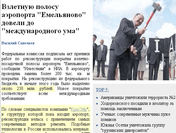 Наконец-то взлетную полосу аэропорта "Емельяново" довели до ума, радуется Константин. Причем с применением самых современных методов ремонта. Их вы можете увидеть на фотографии справа.