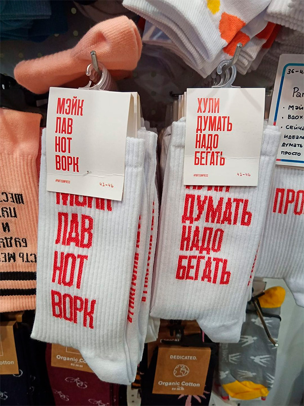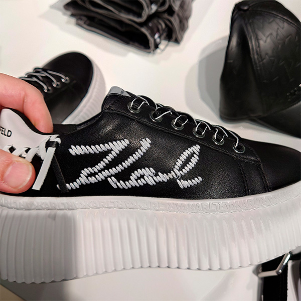 Сослан сфотографировал кроссовок в бутике K.Lagerfeld в СПб и спрашивает, что это вообще должно означать, потому что при всем желании кроме очень искаженного слова Kal тут трудно что-то увидеть, и мы с Бубликом не будем утверждать, что он - художник, и он так видит. Скорее всего, просто те китайцы, которые для Лагерфелда шьют это все в своих мастерских, просто "немноско-немноско" перепили рисовой водку Байцзю. Ну или  Хаундзю. Ну или Чоуцзю. В общем, что-то они такое перепили, да.