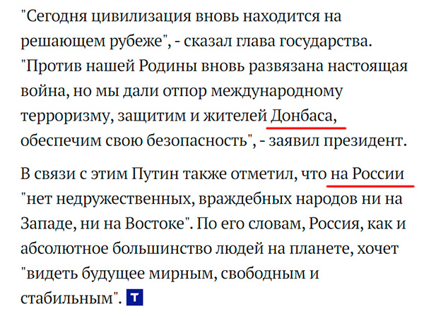 "ТАСС" пересказывает речь Путина 9 мая, рассказал Kotia. А они же не могут искажать речь президента, правильно?