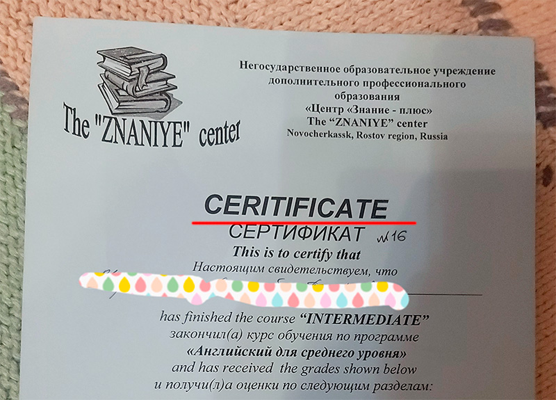 Сертификаты, рассказал Ktibr, они разные бывают. Лично он в свое время от центра "Знание" получил именно вот такой. Уверяет, что вовсе не был таким засранцем, оценки были хорошие и отличные.