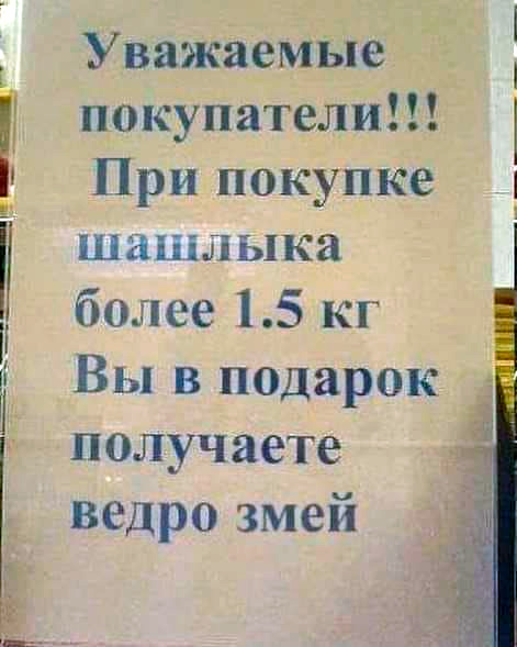 А за что ведро змей в подарок покупателям шашлыка? В чём суть? Какая-то тонкая шутка?