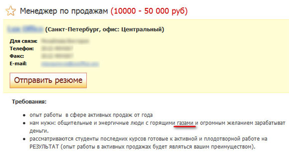 Некоторые фирмы, удивляется Владимир, предъявляют очень своеобразные требования к менеджерам.