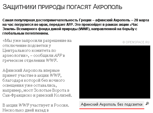 Пальчик Мавлик прислал статью с совершенно гениальной иллюстрацией. Вот в этом, наверное, и состоит доблесть фотографа-профессионала. Переться черт знает куда, заснять этот Акрополь в жутком освещении, но все-таки сделать кадр для своего агентства. Восхищен! Просто восхищен!
