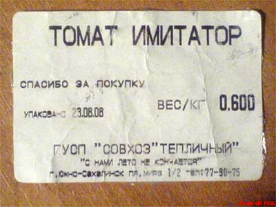 Мария приобрела чудесный продукт - имитатор томата. Снаружи он красный и круглый. Внутри - зеленый и квадратный. Имитация, короче говоря.