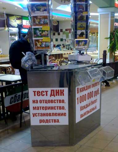 Какой нынче сервис классный, радуется Наталья. И тебе билетик с лотереей, и тебе тест ДНК на отцовство. Глядишь - где-нибудь и повезет. Впрочем, если не повезет и там и там - будет, конечно, обидно.