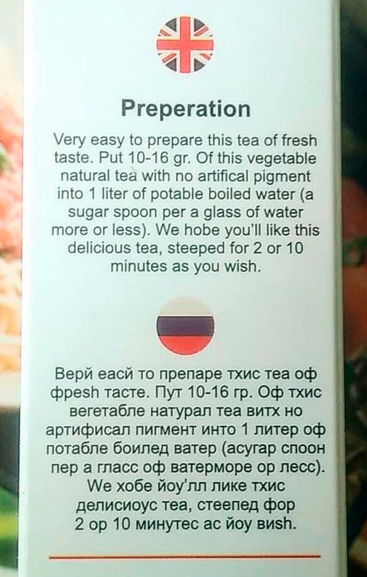 Там где про чай, там и на английском текст волшебный, ну а перевод то вообще вне всяких похвал.
