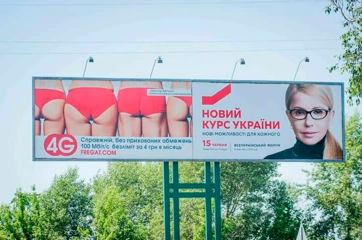Парное размещение рекламы (как про новый курс Украины) часто создает оригинальный смысл.