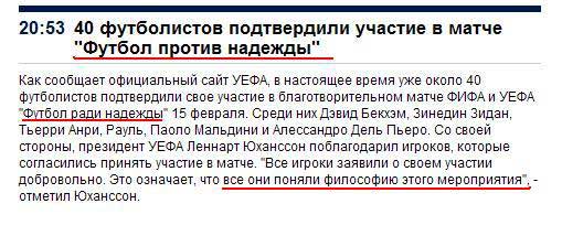 "Дык, эта... - сказали футболисты, почесав потную репу. - Футбол ради надежды против надежды. Или против надежды ради надежды. Блин, этот Юханссон завел себе какую-то Надюху и теперь не знает, как извратиться..."