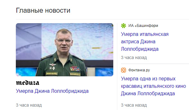 Джину Лоллобриджиду, пугается Владимир, тоже российская армия уничтожила? Вместе со 150 хаймарсами?