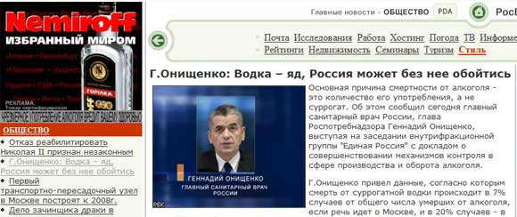 Дружба дружбой, а табачок - врозь, считает Komol. Реклама Nemiroff отлично иллюстрирует постулат Г. Онищенко о том, что в России сегодня потребности в водке больше нет.