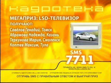 А мы с Бубликом отвечаем, что никакой опечатки не было. Наоборот, ребята вполне честно отвечают тем лохам, которые участвуют в гнусном разводилове под названием "отправь SMS и получи приз", что телевизор - не LCD, а LSD, то есть психоделический. Виртуальный. Появляющийся только под воздействием галлюциногенных препаратов.