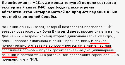 Спортивные функционеры, радуется Contact-2005, наконец-то решили посмотреть в глаза правде и полностью узаконить коррупцию. Теперь те команды, которые будут участвовать в соревнованиях без подкупа судей и различных махинаций, начнут дисквалифицировать.