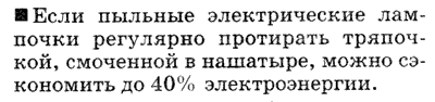 Мол, каким образом будет экономиться электричество? Отвечаю! Там просто опечатка. Смачивать в нашатыре нужно не лампочки, а нос. Тогда в течение минимум получаса вам будет все равно, горит свет или нет. А еще можно смачивать нос эфиром - обалденная экономия электроэнергии получается! Часа два вы просто крепко спите и ничего не потребляете. Потому что если не спать, а курить что-нибудь узбекское, то можно совершить какие-нибудь дикие открытия и оскандалиться: