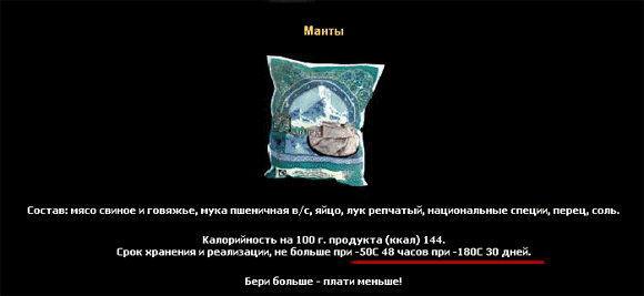 Купил как-то Sergey быстрозамороженный продукт - манты в собственном соку, и только было собраться заложить их в холодильник, чтобы насладиться божественным вкусом как-нибудь потом, как вдруг обнаружил довольно забавные правила хранения: