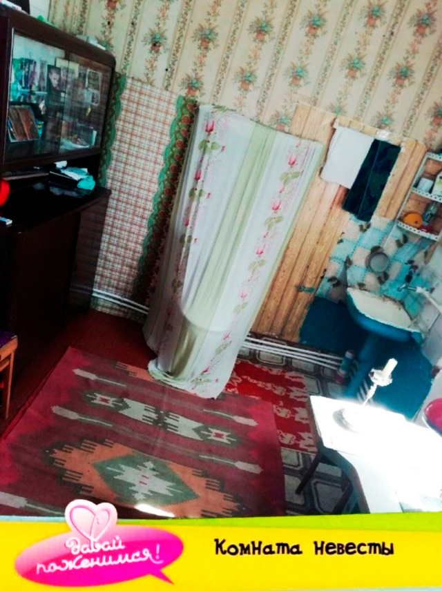 Грустноватая такая комната невесты, но зато нельзя не признать, что декором они действительно озаботились.