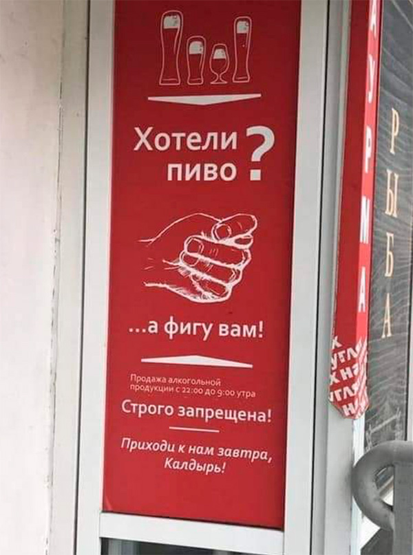 Как-то негуманно относятся к клиентам в этом магазине, негуманно. Ладно бы просто написали "Пива нет". Так они издевательски пишут "Пива нет"!