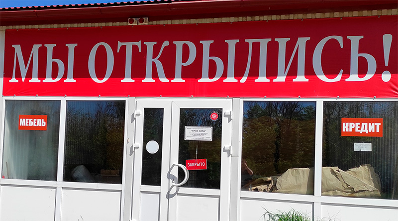 Максим считает, что табличка "Закрыто" как-то не очень хорошо гармонирует с огромным баннером "Мы открылись".