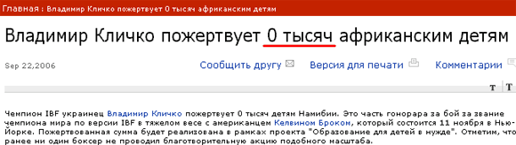 Владимир Кличко, замечает VИКТОR, не хочет быть как Анжелина Джоли, заваливающая Намибию миллионами. Дорог не подарок, считает Владимир, а внимание!