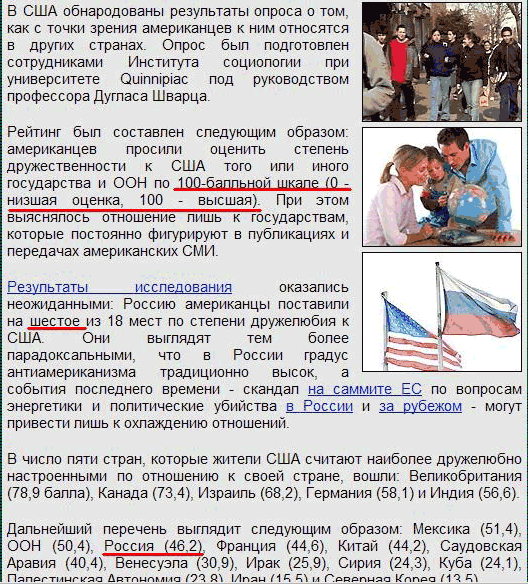 На Newsru, рассказал Алексей, то ли хотели приврать, то ли потеряли калькулятор, то ли что-то не то съели - короче говоря, пурги нагнали вполне конкретной. 100-балльная шкала идет от 1 до 100, а Россия, хоть обсчитайся, оказалась на восьмом месте, а вовсе не на шестом.