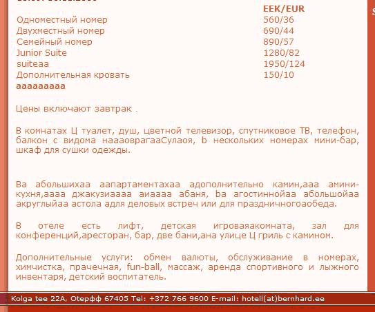 Кусиа приглашаауевауе вауас в симпаутиатичнуайю эстонскаааааую гаустиниауцию. Там еуасть, заааметьте, абольшихаа аапартаментахаа и джакузиаааа аиааа абаня! Аиааа вам просто гарантируют!