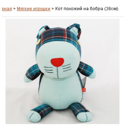 "Кот похожий на бобра" продаётся в магазине Экспедиция в разделе мягких игрушек или товаров для детей,как-то так....)