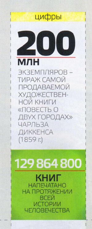 Какие интересные сведения, восхищается Виктор. Из них прямо следует, что все книги, выпущенные человечеством, это были только "Повесть о двух городах". Причем осталось выпустить еще порядка 70 миллионов этих "Повестей", после чего можно будет попробовать начать печатать что-то другое. Ну, например, "Буратино" - миллиончиков сто.