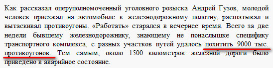 Юрий читает новости с официального сайта МВД и восхищается молодым человеком, который за две недели похитил 9 миллионов противоугонов весом по 1,3 кг каждый. Это 11 700 тонн.