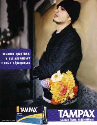 Какой симпатичный тампакс, замечает Леша. И не такой уж незаметный. А цветы - так вообще очень яркие, так что зря они на него клевещут.