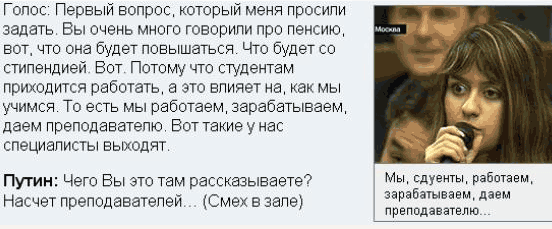 Сдуенты, а точнее сдуентки, рассказал Mike, во время вопросов президенту честно признались не только в том, что они сдувают по полной, но и в том, что еще дают преподавателям. Вот такие вот сдуентки пошли - честные!